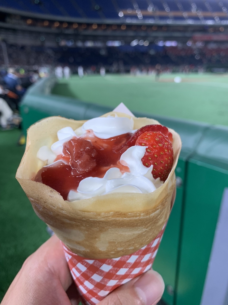 試合前には一部界隈で東京ドームの定番?とされているマリオンクレープを。