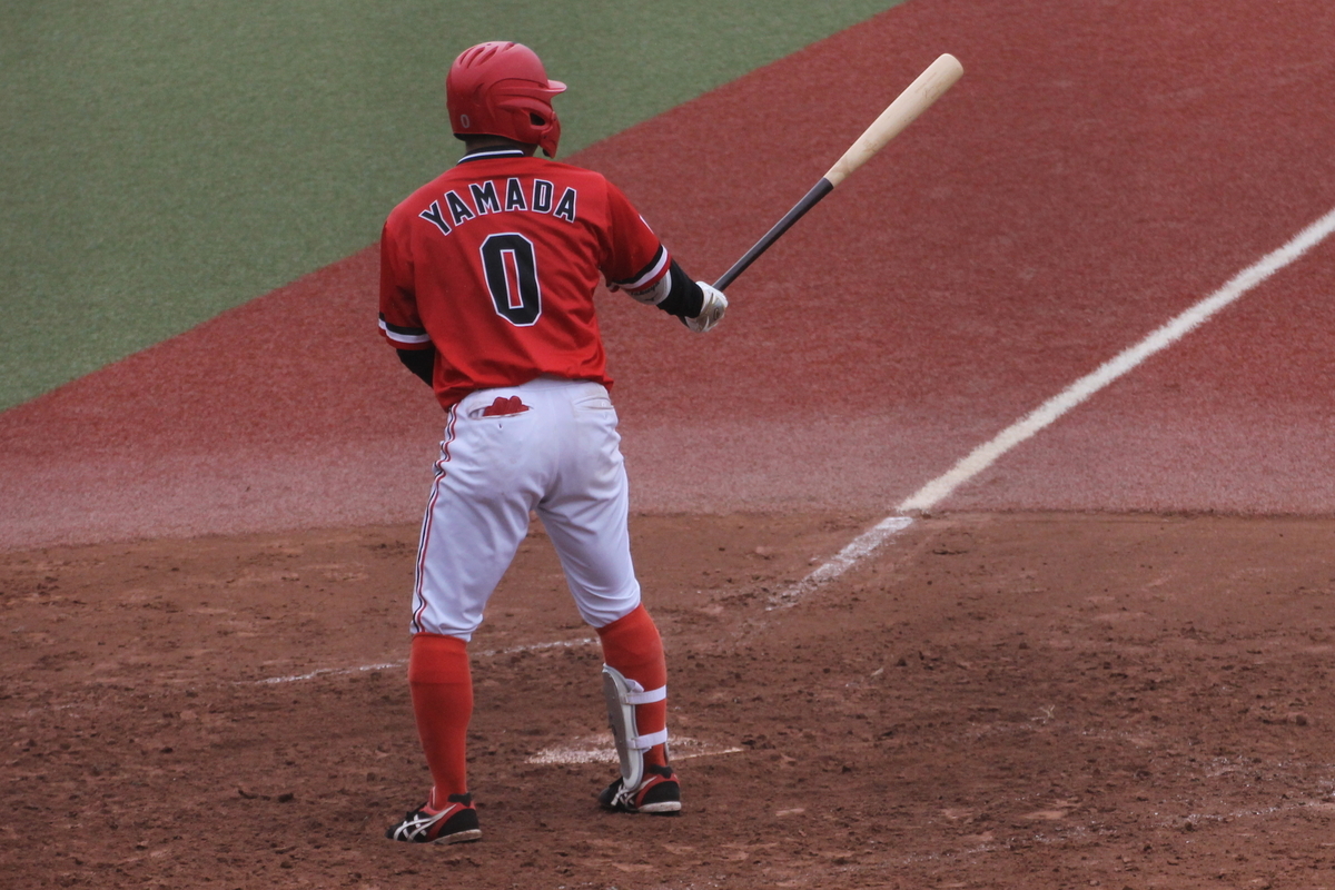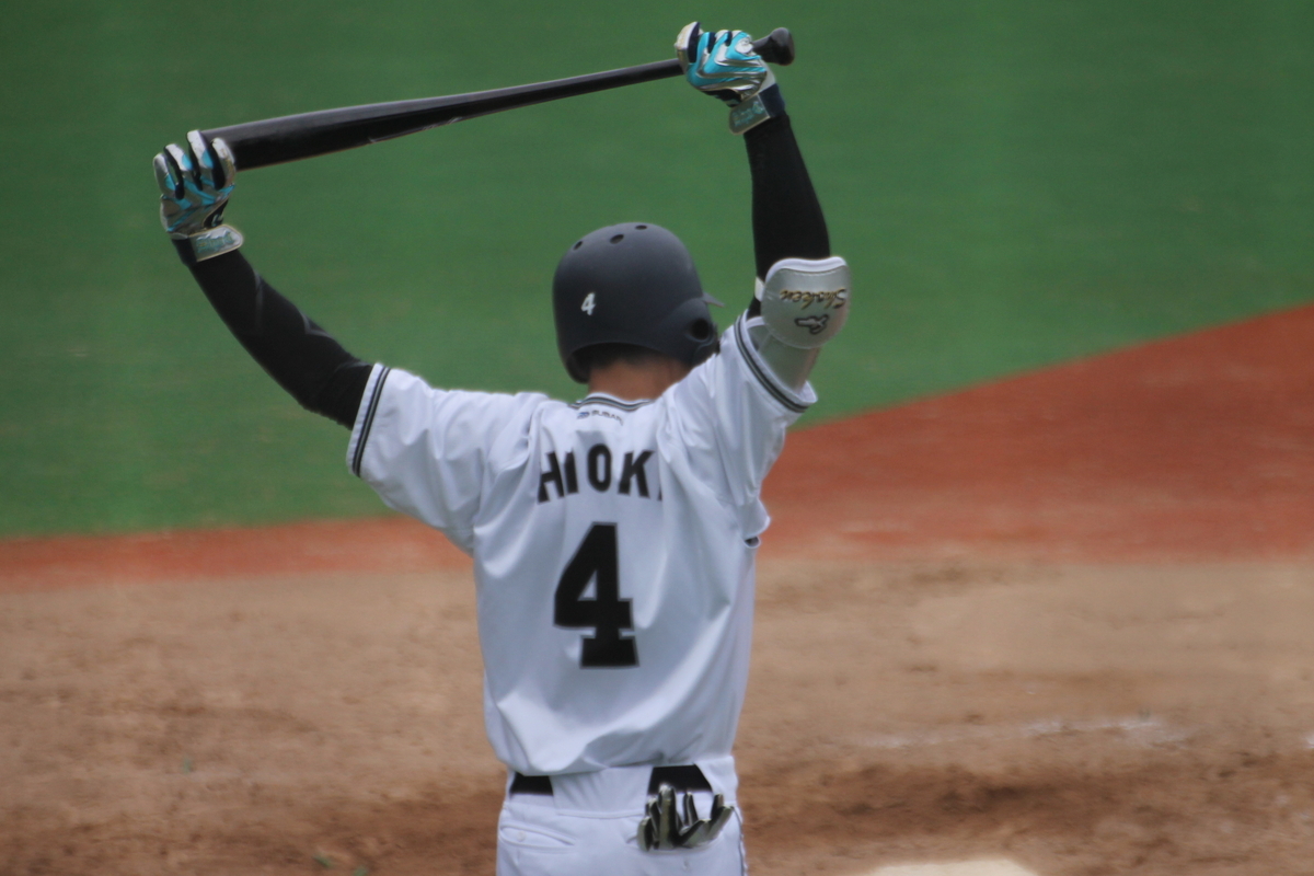 1回表を何とか最少失点で切り抜けた直後の攻撃は、1番の添田選手はフルカウントまで持っていくもののキャッチャーへのファールフライに倒れますが、続く2番の稲垣選手はライト前にチーム初ヒットを放ちます。